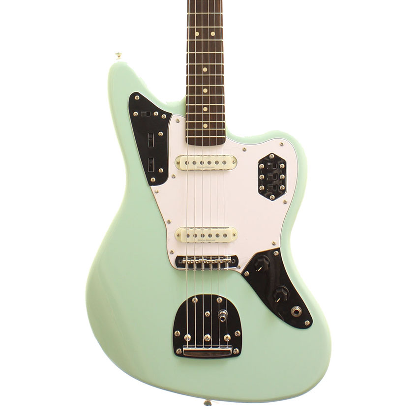 An authentically styled Jaguar now joins the Vintage Modified family, with present-day touches including sharp, clear Duncan Designed pickups and a modern fingerboard radius. Squiers new Vintage Modified Jaguar rocks the models distinctive hallmarks, too - such as the 24” scale, dual-circuit switching and controls, floating-vibrato bridge and an assortment of finishes.