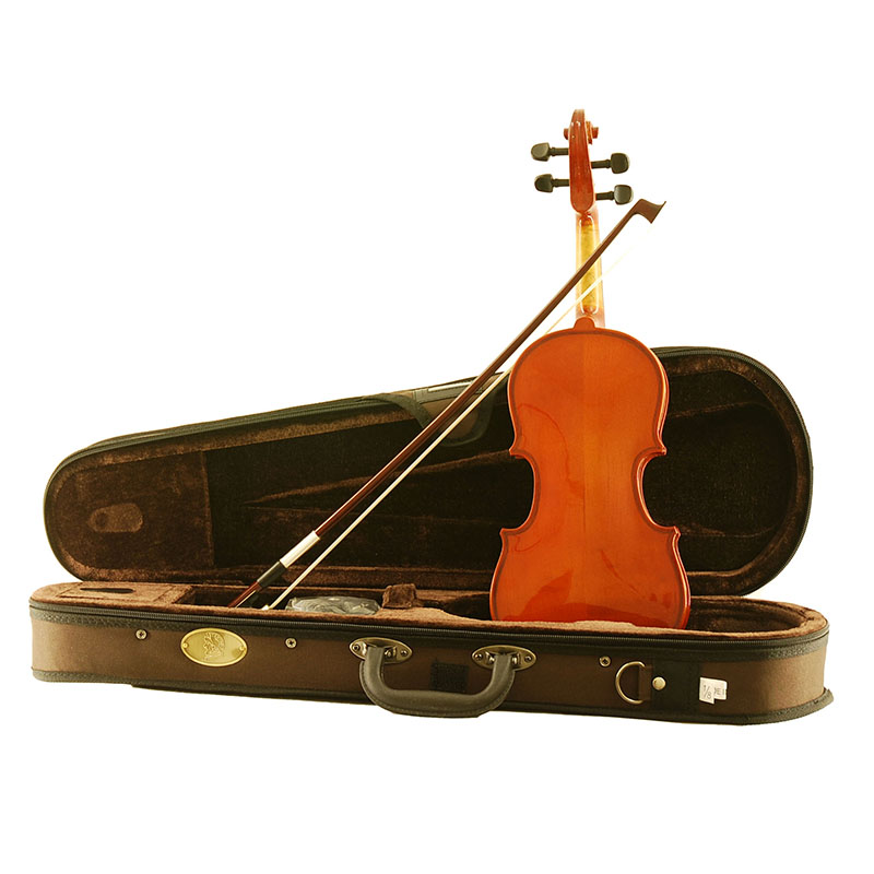 This is produced to satisfy the need for an entry level violin where economy is the main criteria. It features black finished hardwood pegs and fingerboard, and alloy tailpiece with four adjusters. The outfit includes a standard lightweight case and wood bow