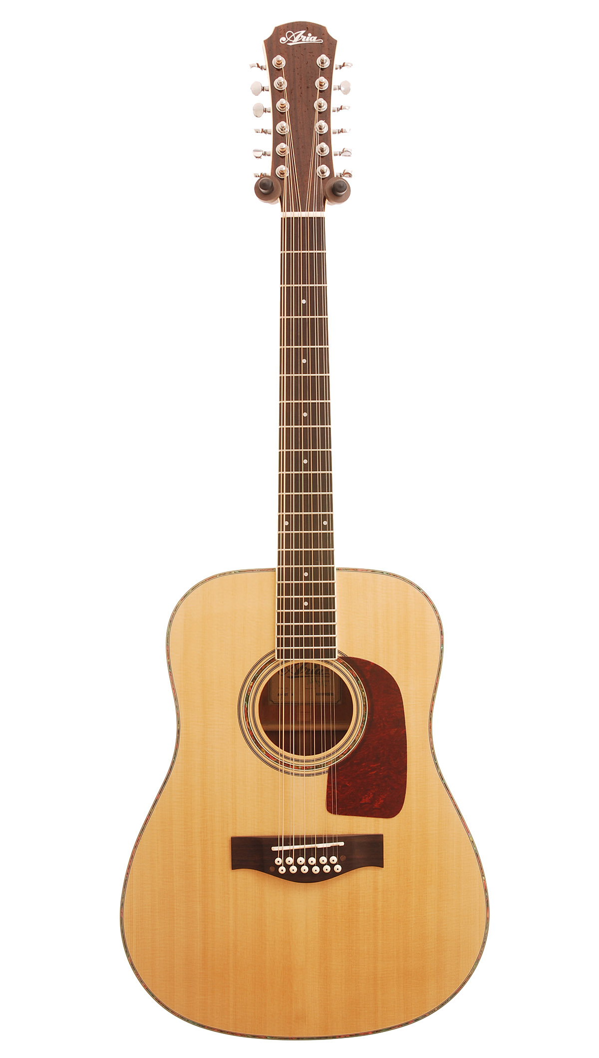 Aria’s AD-20T 12-string steel string acoustic has a solid Sitka Spruce top, Mahogany back and sides and a Rosewood fingerboard. The tone is clear, warm and loud, with a hand-friendly neck profile.