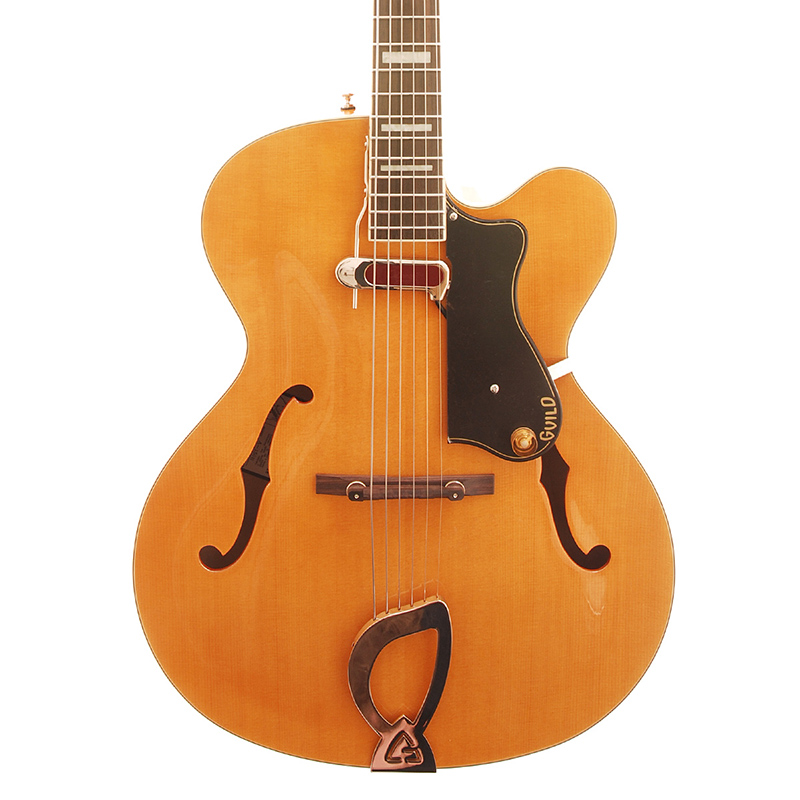 The elegant tone quality and design of this guitar will bring real satisfaction of ownership to the most critical player. A truly outstanding acoustic/electric, the Guild A-150 Savoy is a pleasure to see and hear, pairing a wonderfully free-playing late-1950s Guild orchestra model with the distinctive addition of an exceptionally voiced DeArmond 1000 floating pickup. The welcome return of a true Guild classic.