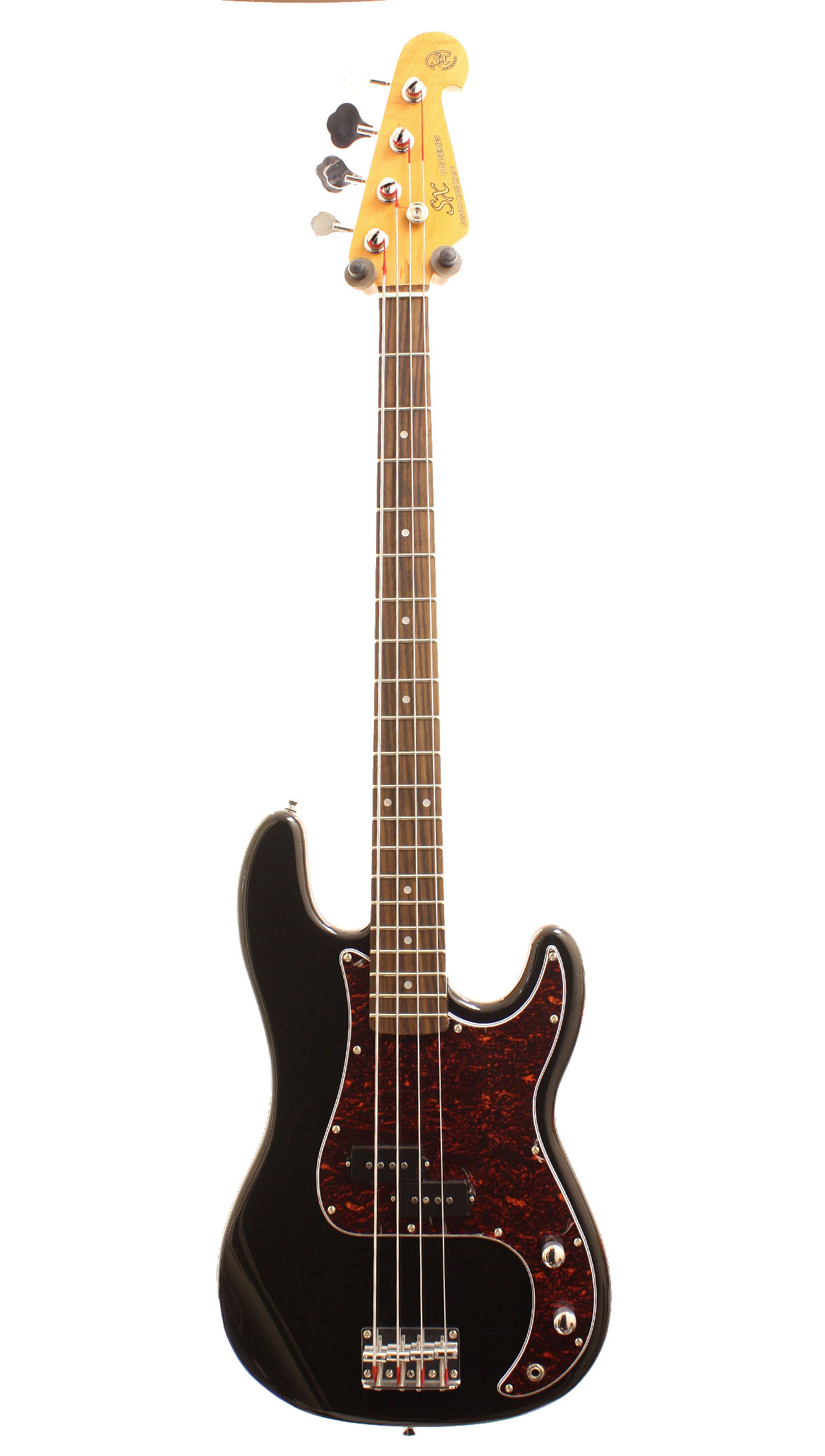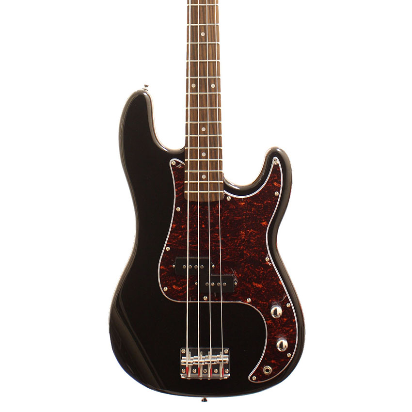 Fantastic P-Bass style guitar for a very reasonable price. Solid alder body fitted with single coil split P-Bass style pickups. Very easy to play thin maple neck with vintage style laquer and rosewood fingerboard. This really is an exeptional bass for the money, comparable to basses twice it's price!