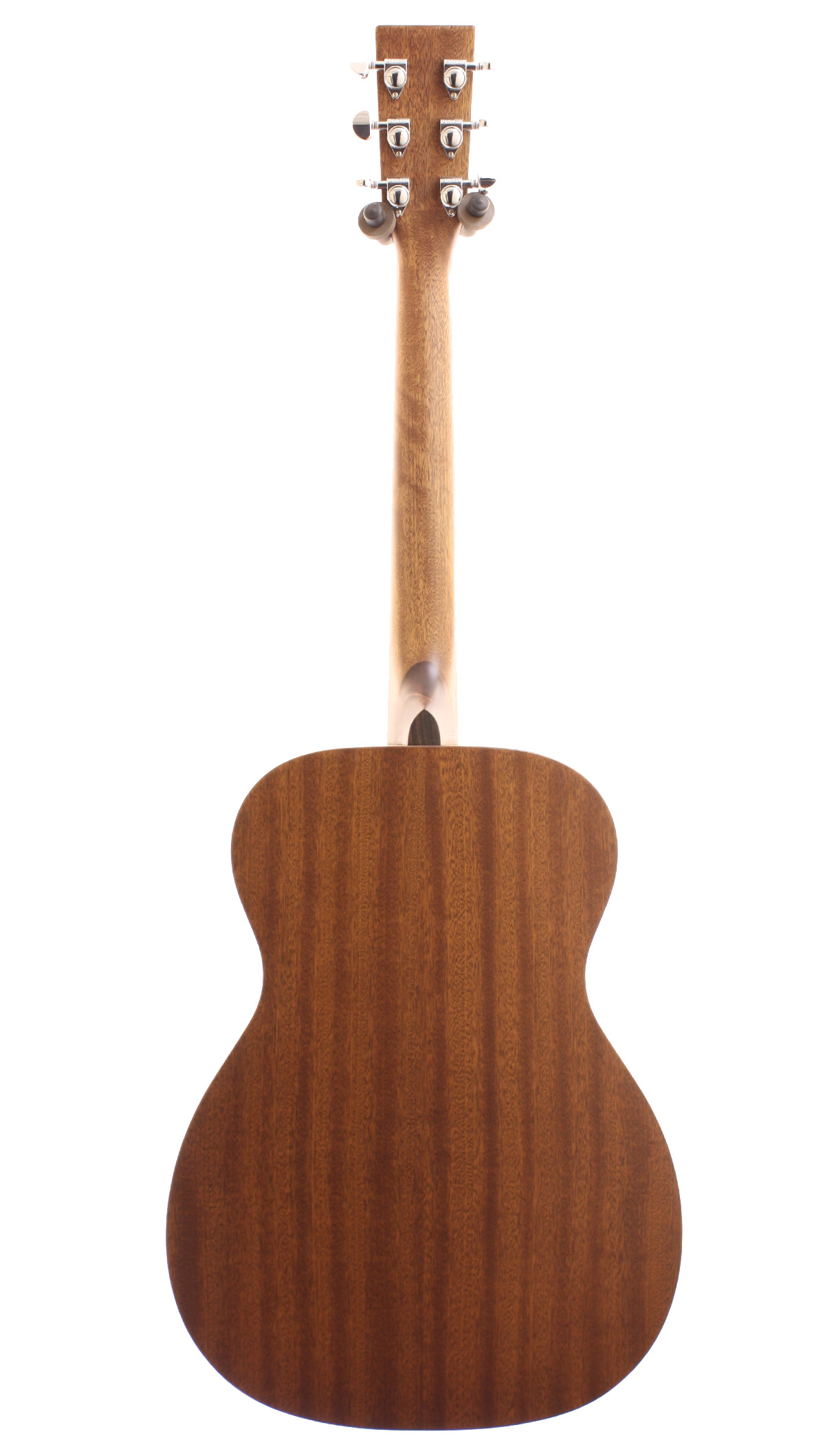 Double 0 size acoustic guitar with solid mahogany top and mahogany back and sides. The smaller body size makes this guitar extremely comfortable to play while also producing a warm sound, ideal for folk and blues playing. This guitar is also fitted with good quality Grover machine head tuners.