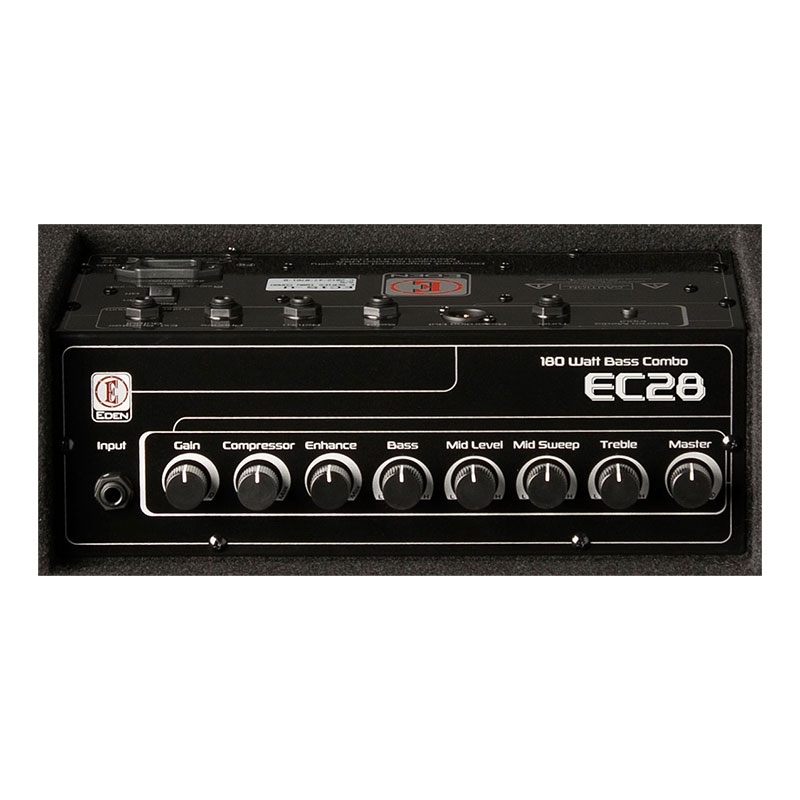 The EC28 with 2x8" speakers and 180W the EC28 is a easily portable and punchy amplifier. As well as the Eden’s "Enhance" control, it has an array of other useful features. 4 Stage EQ Bass, Mid, Mid sweep and Treble, Compressor with level control. It also contains 3.5mm jack socket (MP3), Balanced XLR output, 1/4" headphone jack socket, Effects loop, External speaker output, 1/4" tuner out.