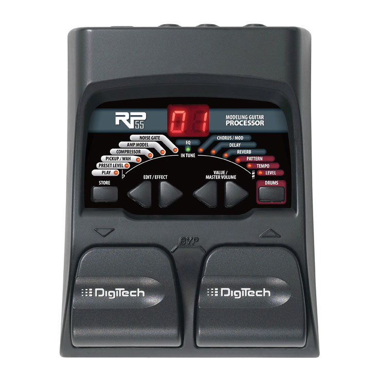 Equipped with 11 Amp Models and 20 Studio Quality Effects, up to 8 effects can be used at once for unimagined tonal possibilities. The RP55 is the easiest RP product to use; just simply dial up your choice of amps and preset effects settings with no deep parameter settings. All settings come from our year's of experience with the pros. We've just made professional tone easy.The RP55 uses our AudioDNA™ DSP chip to produce effects and amps that studio-class. Add 24-bit A/D/A conversion so that no frequency response is lost between inputs and outputs. Also included is a drum machine with 30 patterns and an easy-to-use 13-LED chromatic tuner.