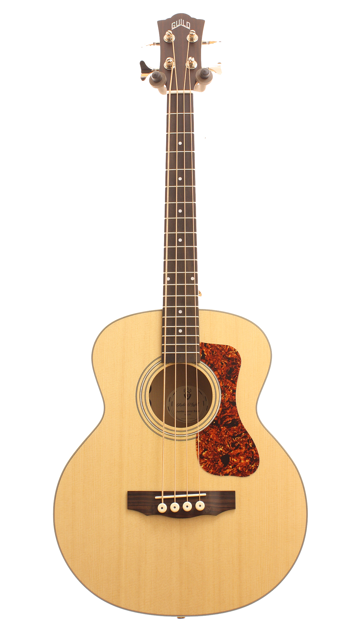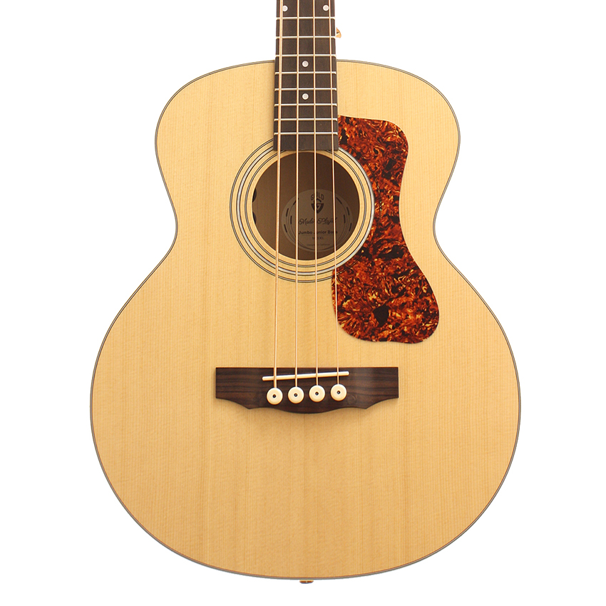 The Jumbo Junior Bass’s deep voice can be amplified or recorded using its onboard Guild AP-1 Active Acoustic Piezo pickup system with built in volume and tone controls. Other standout features include an ebony fingerboard and bridge, bone nut and saddle, mother-of-pearl rosette and Guild peak headstock logo, tortoiseshell pickguard, and nylon-core phosphor bronze strings. A Guild deluxe padded gig bag is included.