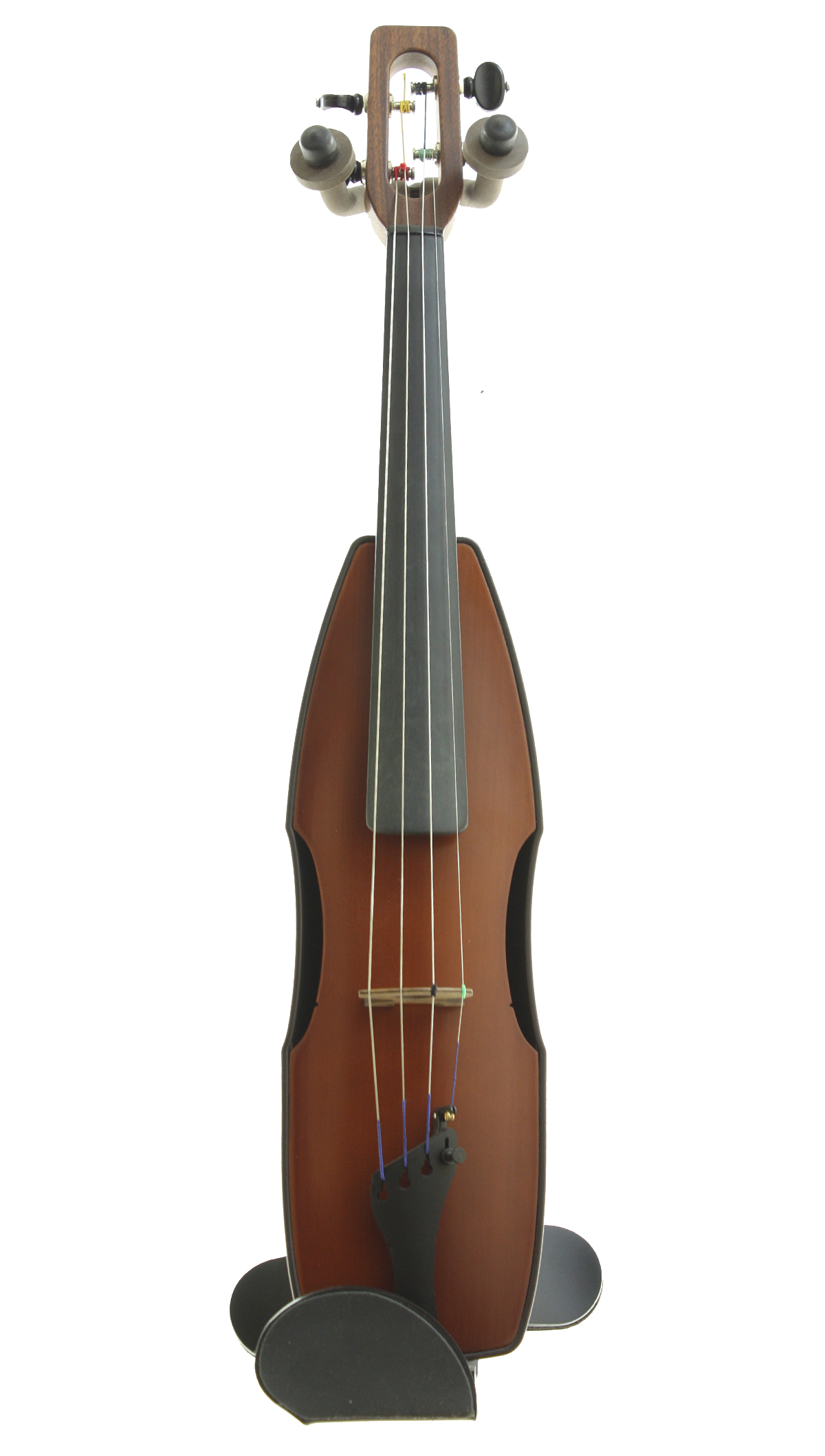 With its unique open headstock and use of simple Grover friction pegs or optional geared Pegheds, the Cricket Violin is remarkably easy to tune or restring. Like our other instruments, the body is molded of a high quality, glass reinforced, durable thermoplastic for stiffness and resonance. The arched top is CNC machined solid spruce with a choice of solid walnut, mahogany or maple neck. The included chin and shoulder rest is adjustable three ways to accommodate all players. The end result is a surprisingly full range, warm sounding violin that's comfortable to hold and easy to play.