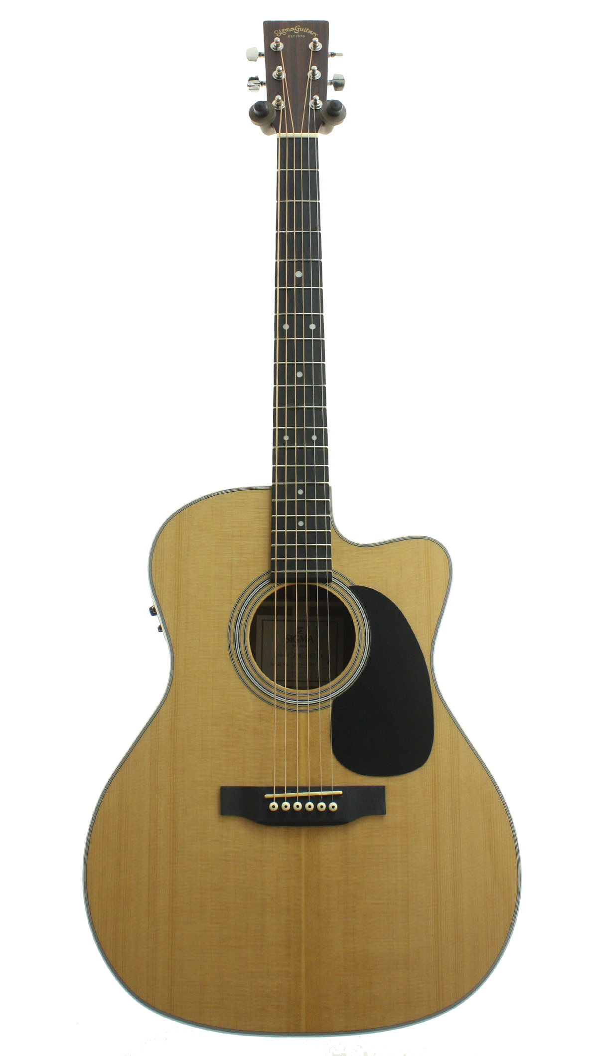 This latest version Sigma JMC 1STE+ electro jumbo cutaway guitar is part of the recently upgraded range and offers the most up to date specifications. Premium features include Solid Sitka Spruce Top, Fishman electronics and traditional Dovetail joint. A wonderfully rich sounding instrument with plenty of bass response complimented by clear top end.
