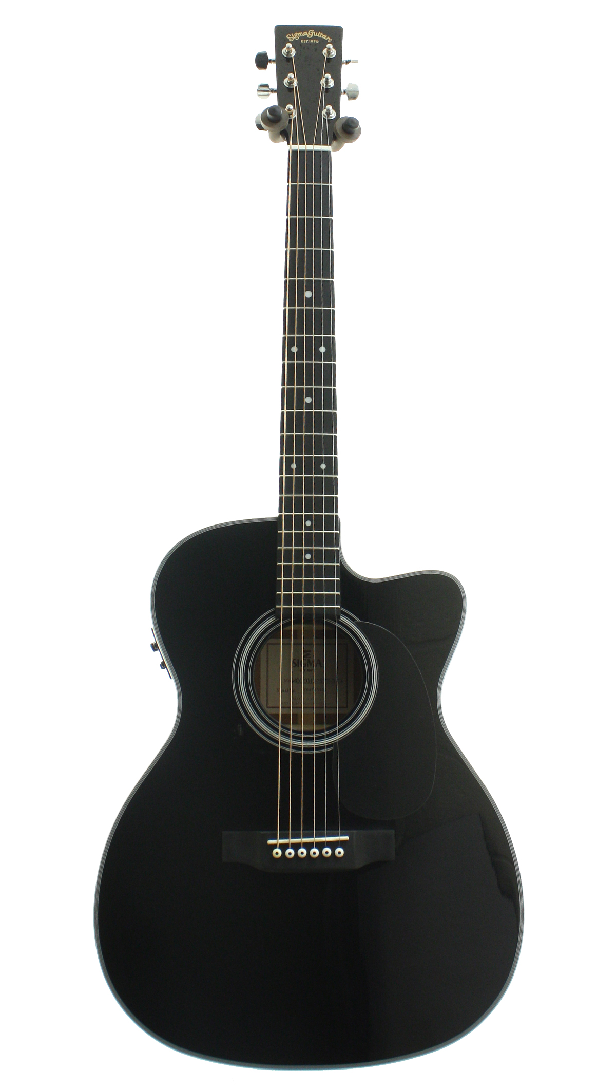 Beautiful 000 sized Electro-Acoustic from Sigma packing some great features such as a Solid Sitka Spruce soundboard, Dovetail neck joint, Grover tuners and Fishman electronics. A comfortable player for finger pickers and strummers alike, finished in a lustrous Gloss Black.