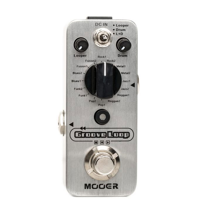 The MOOER GROOVE LOOP brings together both the MICRO LOOPER and MICRO DRUMMER into one micro pedal, for the ultimate in a portable jamming companion. Both elements can be used independently from one and other, or simultaneously. When used simultaneously the looper will be automatically synchronised to keep in time with the drum groove you’ve selected and an intro click will be played when recording the first loop to ensure you’re in time with the groove. The tap tempo button makes adjusting the groove speed very easy and independent playback level controls for both the Drums and the Looper ensure GROOVE LOOP is a breeze to dial in and adjust on the fly.