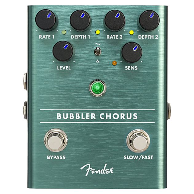 Chorus is a great way to add some dimension to your guitar tone—thick, wide and rolling, it’s been the foundation of many classic guitar sounds. The Bubbler Chorus breathes new life into this classic analog effect, offering new ways to shape your tone. Switchable Slow and Fast speeds with independent Rate and Depth controls let you dial in the perfect sound for your music, while the Wave toggle switch lets you select between traditional Sine and Triangle waveforms. The Sensitivity control allows modulation rate changes based on your playing dynamics—dig in and the intensity of the Bubbler increases.