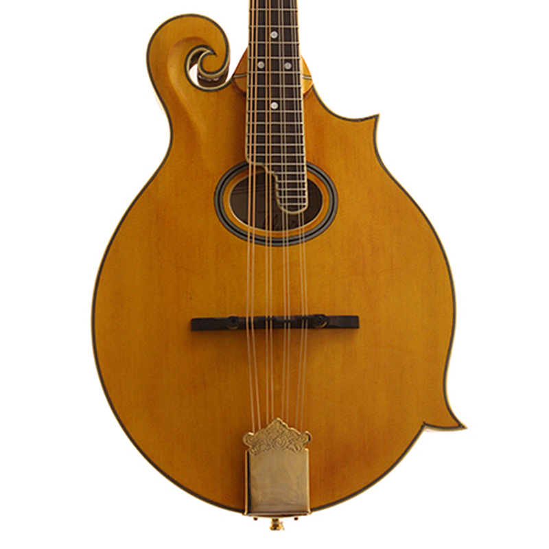F4 Style, Scroll body with oval soundhole. Solid spruce top, solid maple body.