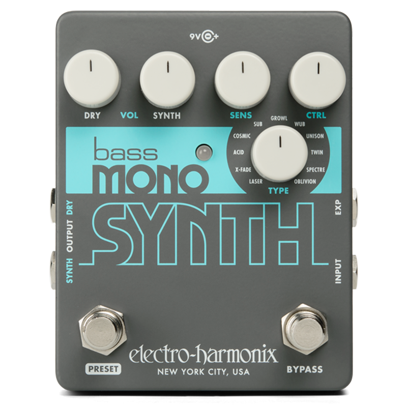 The EHX Bass Mono Synth transforms your bass into eleven great sounding synthesizers... from vintage synth emulations to thick, stacked voices to deep pulsing sounds and more.