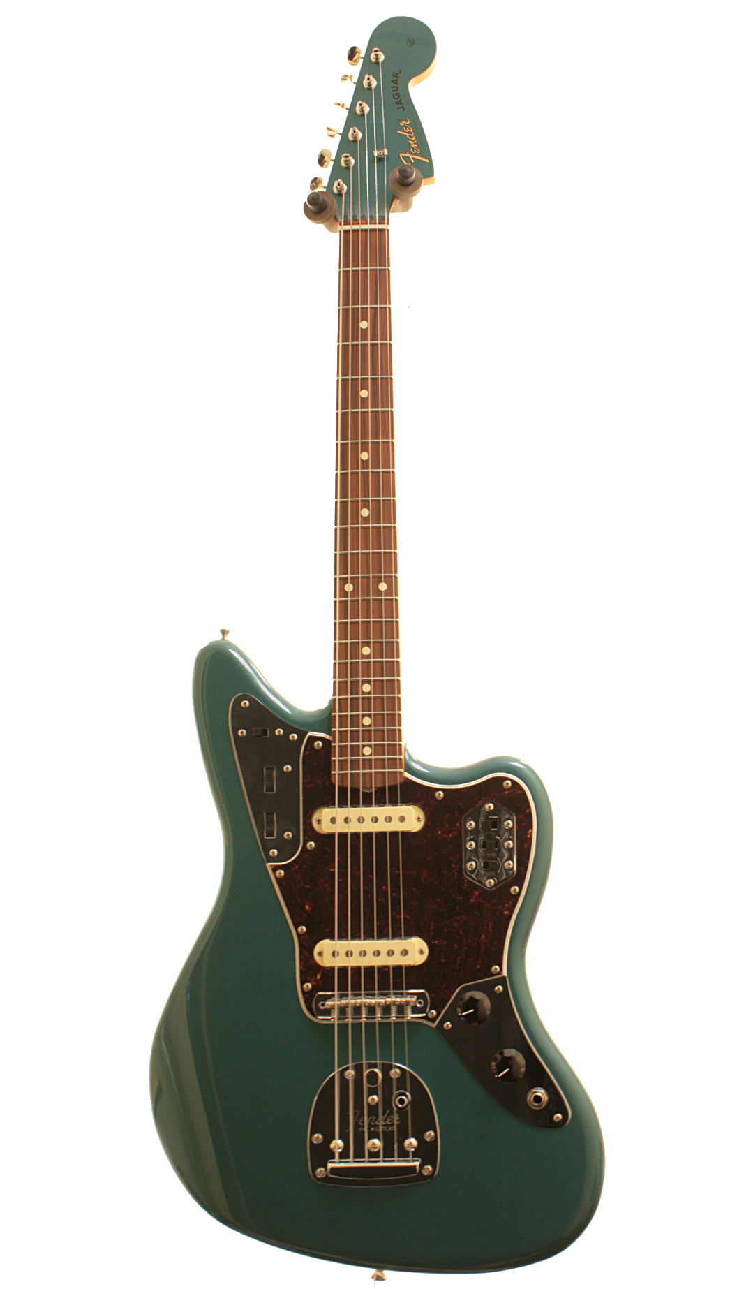 For authentic, vintage-style tone we recreated the pair of single-coil Jaguar pickups to sound and feel more like the originals—keeping the focusing cages, of course. The chiming neck pickup is tempered by the bright, aggressive bridge pickup. The “Mid 60s C”-shaped neck has a 7.25”-radius fingerboard with 22 vintage-style frets for classic playing feel. Vintage-style Jaguar bridge, tremolo and tuning machines provide original-era aesthetics, rock-solid performance and tuning stability. Other features include the classic lead/rhythm circuit, chrome hardware and 4-bolt neck plate. Includes a deluxe gig bag.